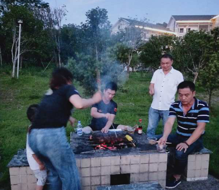 湖南星河高新建材有限公司组织员工在湖南湘御明月湖山庄烧烤