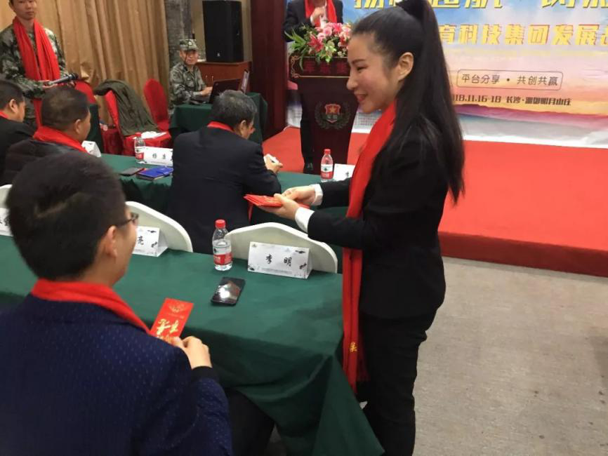 大会上军联集团董事长李大量女士亲自给各位股东分发红利。