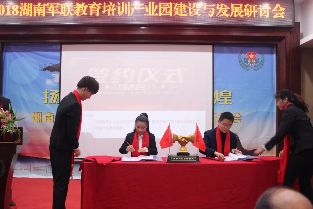中国机器人运动工作委员会国防军事机器人特色研学教育基地(长沙)与军联集团签约