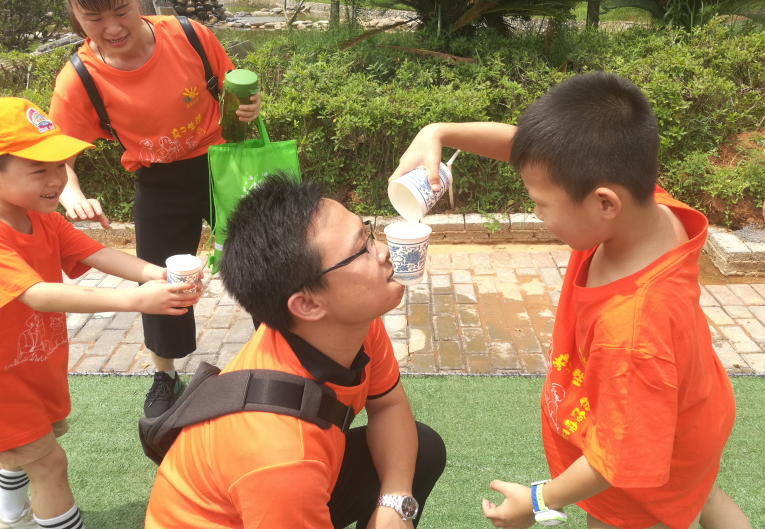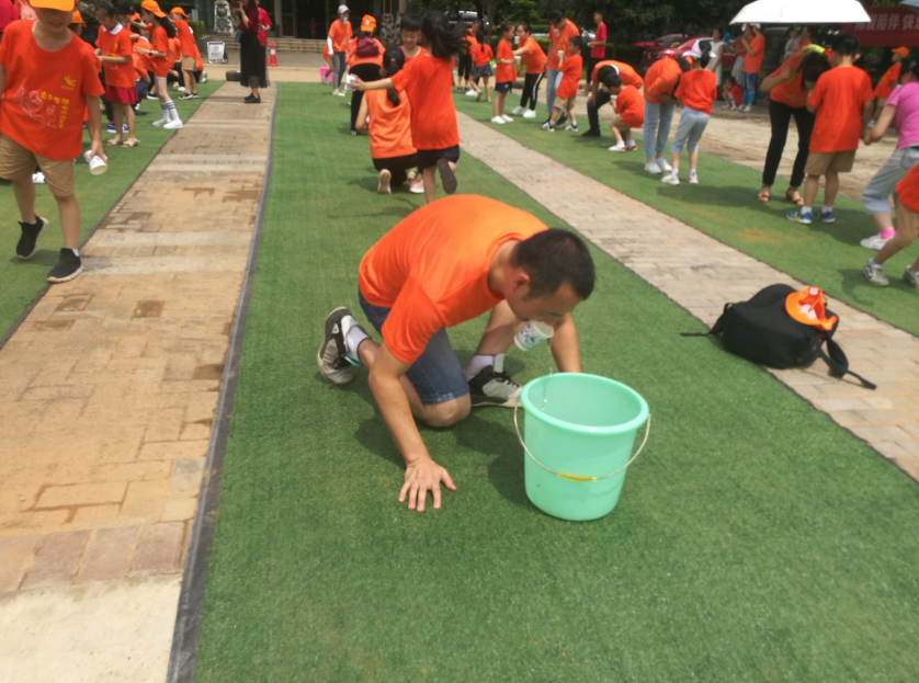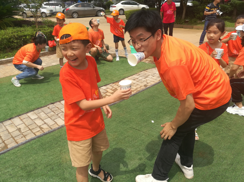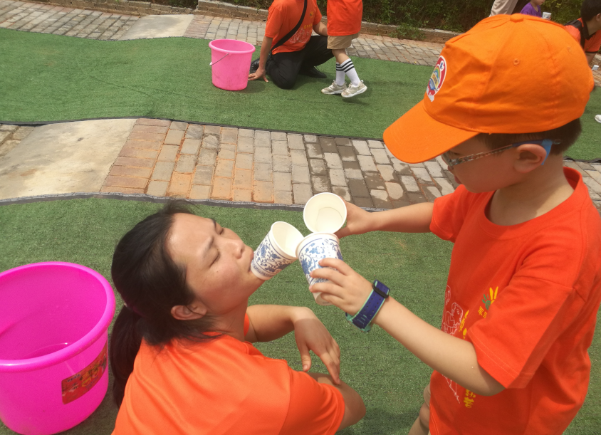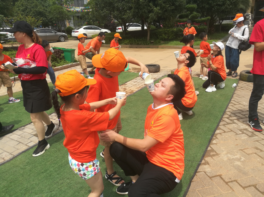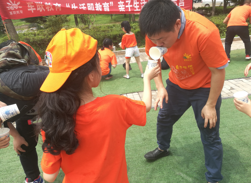 下午孩子们在军联明月山庄,在教官的带领下进行了紧张刺激的游戏。瞧,“爱的传递”中,家长和孩子们进行了纸杯传水接力赛,为了争第一,各个队伍使出浑身解数,有的仰着脑袋,有的歪着头,以防纸杯中的水洒出。