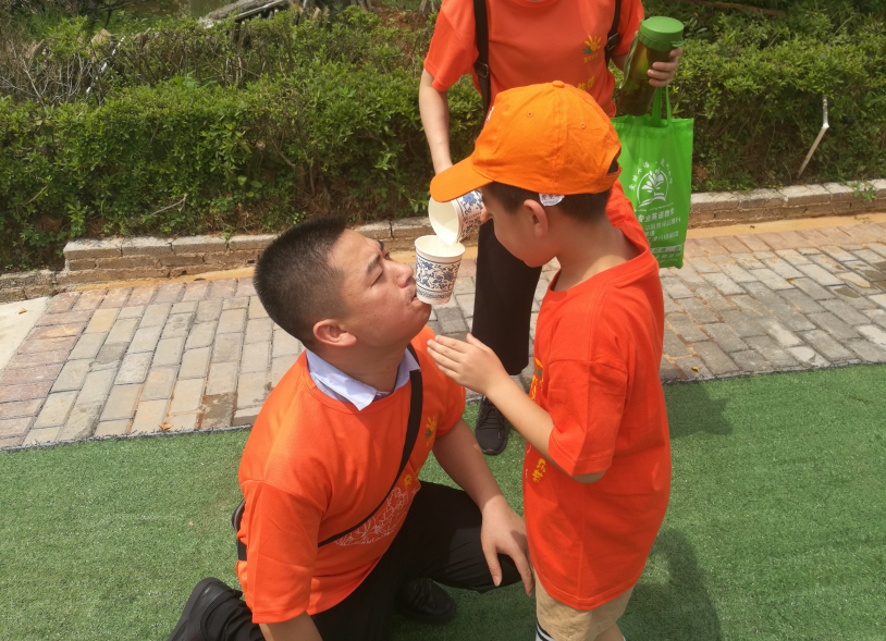 这是一个需要亲子间充分协同合作的游戏,如若不然,水就会毫不留情地洒掉,无法完成任务。所以,家长跟孩子们需要为了同一个目标而努力,在快乐的游戏中体现亲子间的默契与孩子的智慧。