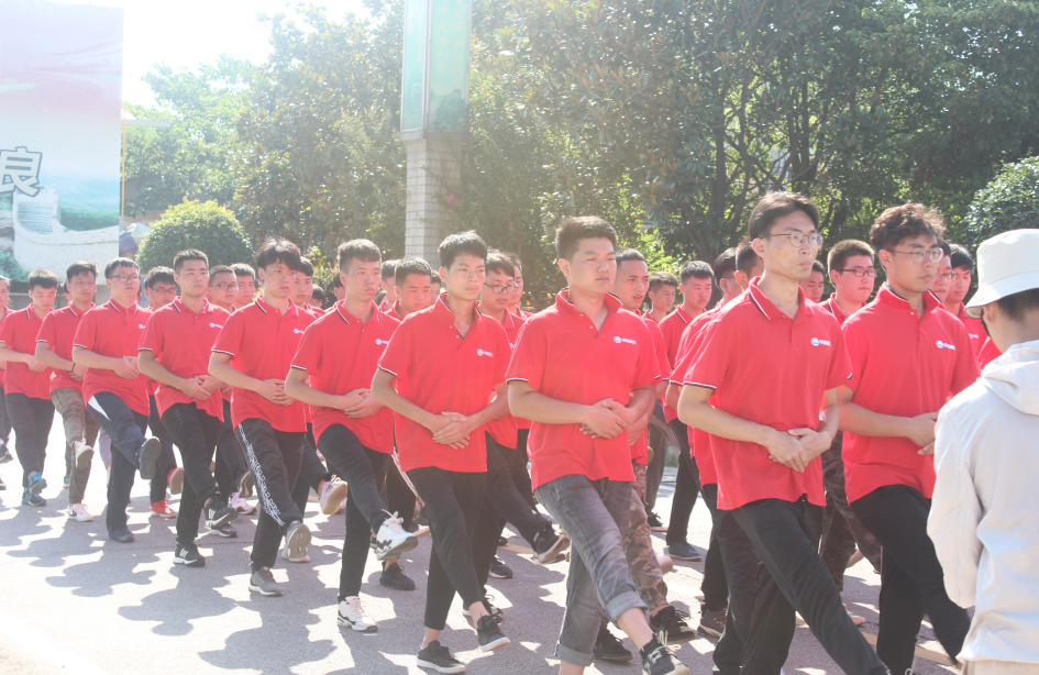 军训的历练催促新员工适应紧张的日程安排。立正稍息,一令一动;停止间转法,身转心不转;齐步正步,脚步铿锵,精神昂扬!
