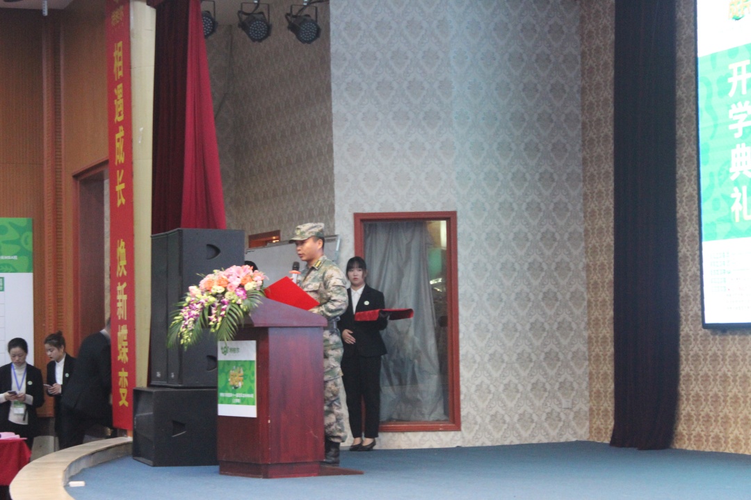 军训总教官彭剑红先生进行现场发言,宣读此次活动的各项规章制度。