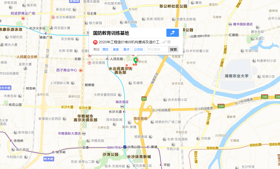 长沙国防教育训练基地的地理位置位于长沙市人民东路美丽的浏阳河畔,可利用地表面积80余亩,建筑面积达10000多平方米,有高、中、普通的宾馆式住房及营院式高低床住宿;有千人大会场、五百人会场等20余专业的多媒体教室;有大型的操场及战术训练场;有大、中、小食堂及包厢。