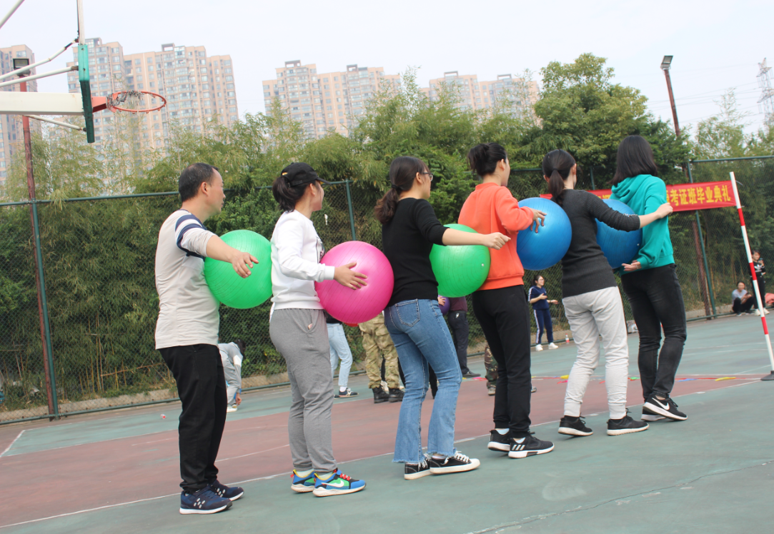 心心相印也叫背夹球游戏,是一个需要相互配合进行的互动游戏,游戏中需要步调一致、相互配合。