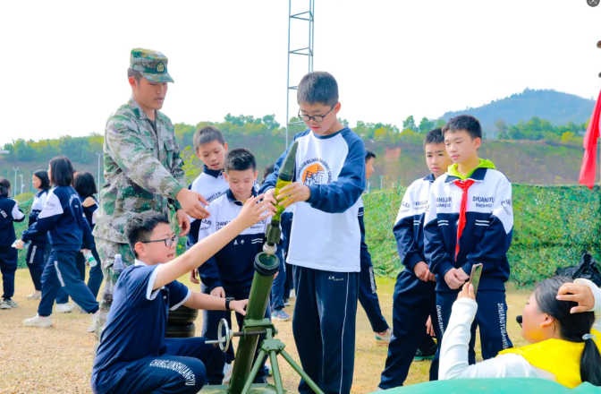 在湖南军联全民国防教育基地,他们展开了一系列丰富多彩的国防教育活动。本次活动不仅是一次简单的研学,更是一场深刻的爱国教育和精神洗礼,旨在通过实践体验和情感共鸣,培养学生们的国防意识和集体荣誉感。